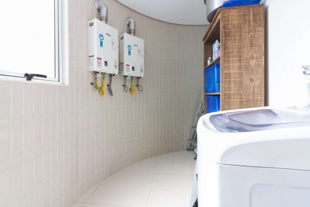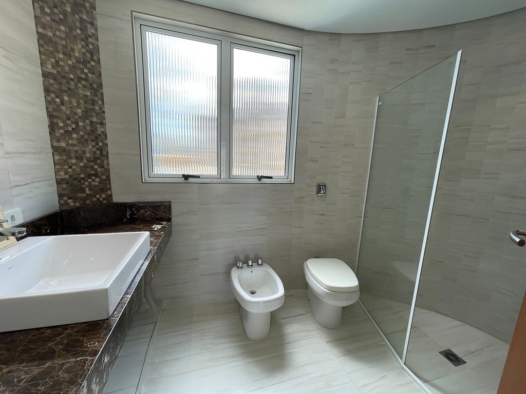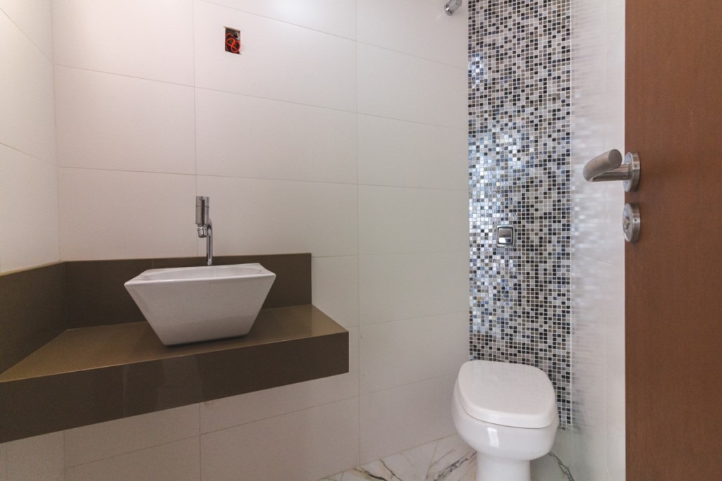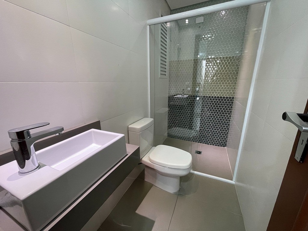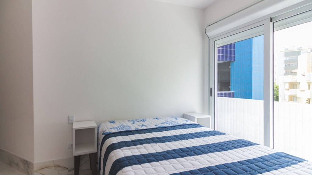 Os pisos são em porcelanato de primeira linha, garantindo beleza e fácil manutenção. A cozinha planejada com ilha central em granito oferece funcionalidade e um design moderno. As persianas integradas nos dormitórios trazem praticidade e melhor controle da iluminação natural.